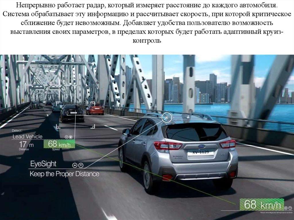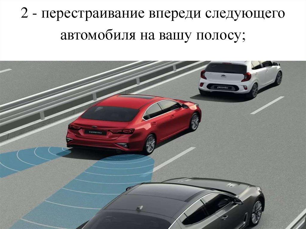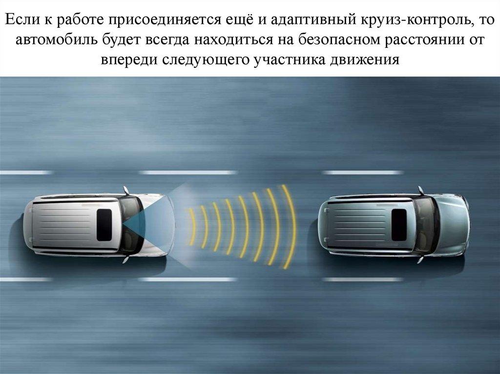 столкновение неизбежным6. Если к работе присоединяется ещё и адаптивный круиз-контроль, то автомобиль будет всегда находиться на безопасном расстоянии от