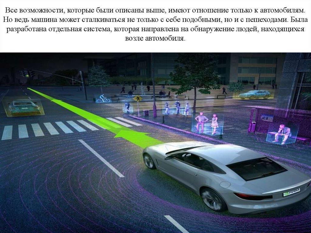 себе подобными, но и с пешеходами. Быларазработана отдельная система, которая направлена на обнаружение людей, находящихся