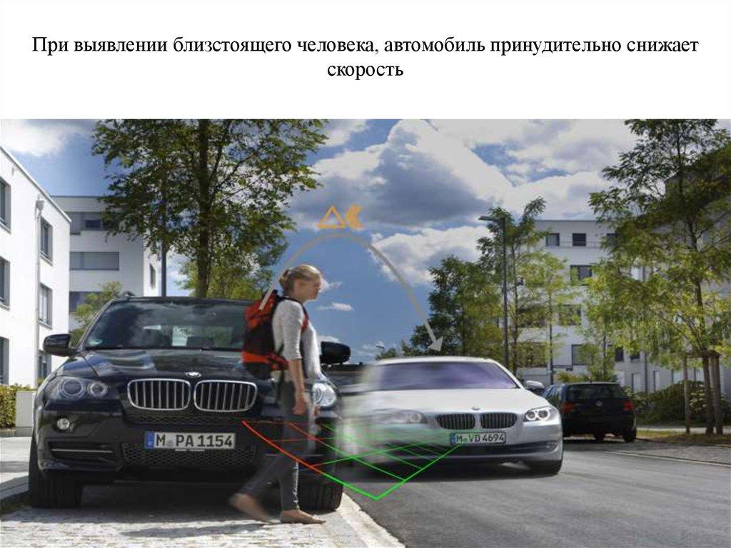 35. При выявлении близстоящего человека, автомобиль принудительно снижает скорость