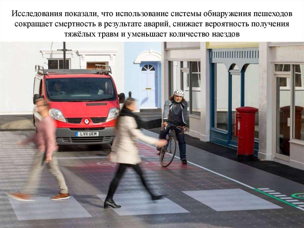 36. Исследования показали, что использование системы обнаружения пешеходов сокращает смертность в результате аварий, снижает