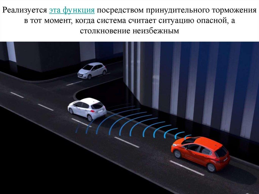5. Реализуется эта функция посредством принудительного торможения в тот момент, когда система считает ситуацию опасной, а