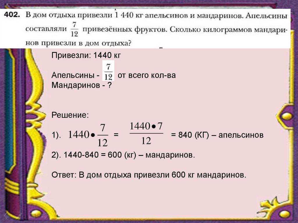 2). 1440-840 = 600 (кг) – мандаринов.