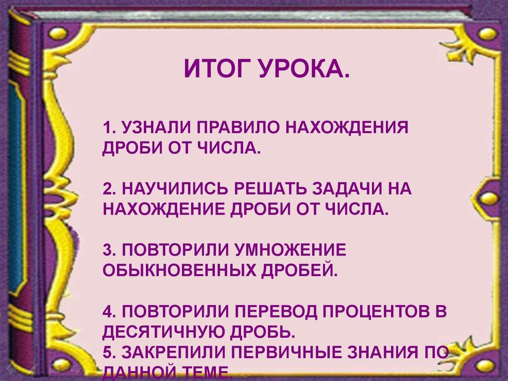 НАХОЖДЕНИЕ ДРОБИ ОТ ЧИСЛА.