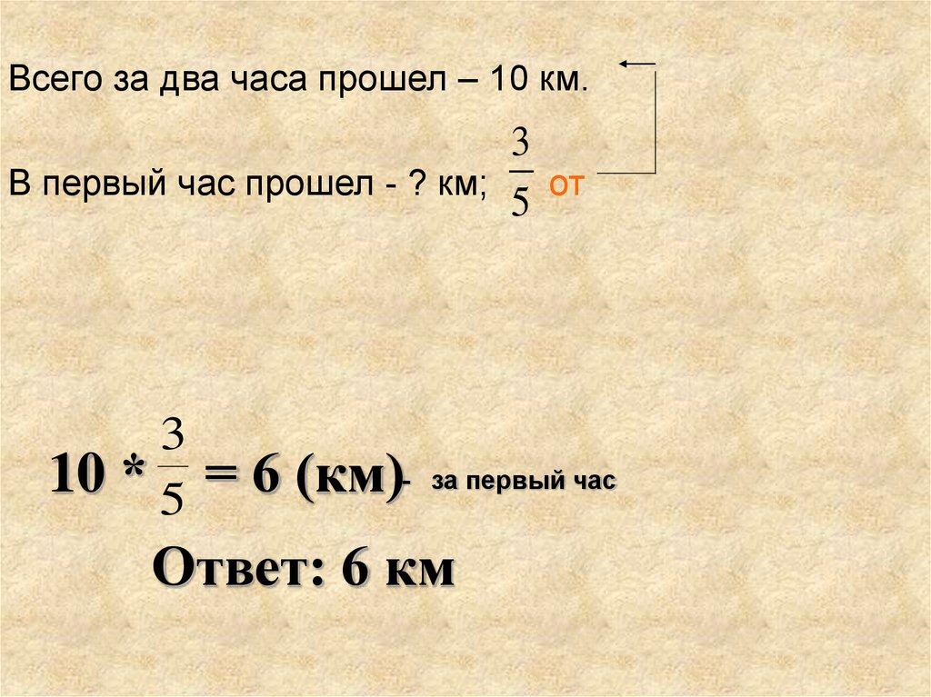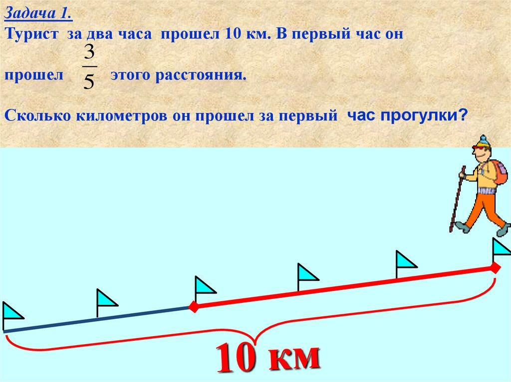 Задача 1.Турист за два часа прошел 10 км. В первый час он