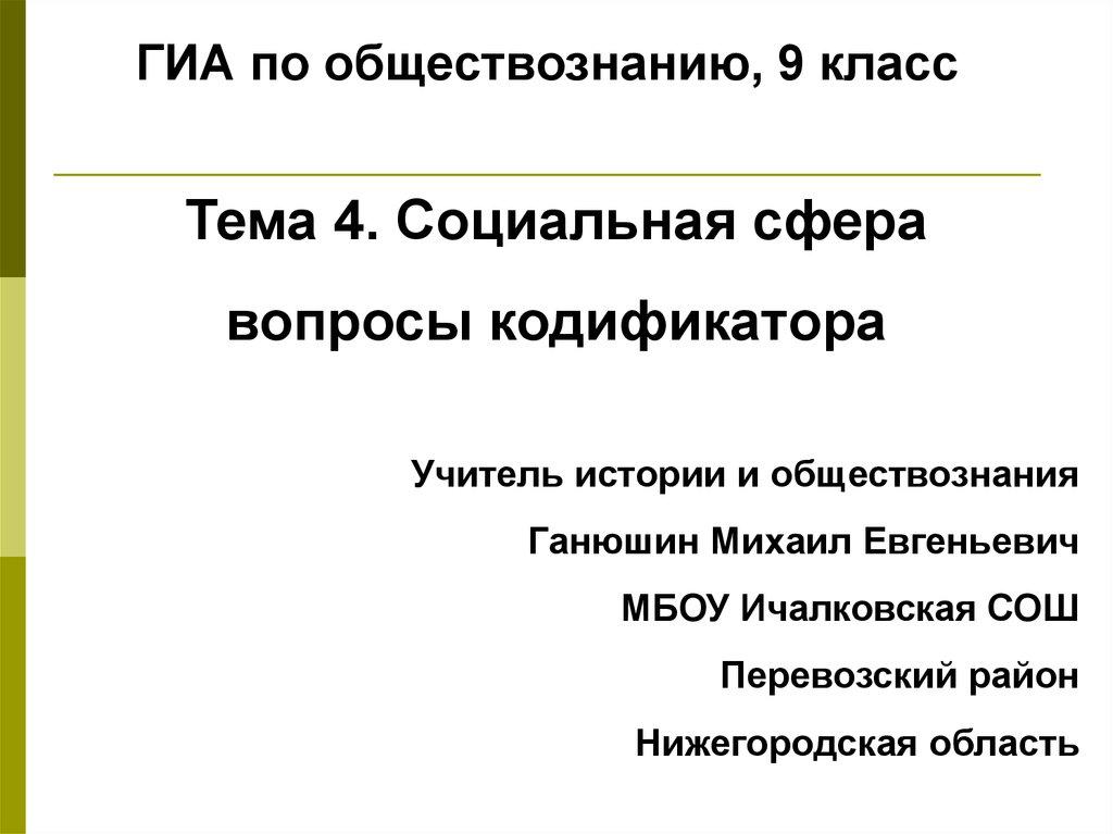 ГИА по обществознанию, 9 классТема 4. Социальная сфера