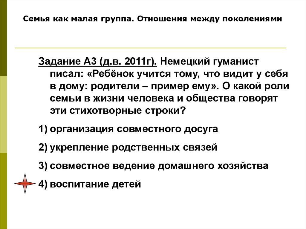 Семья как малая группа. Отношения между поколениямиСемья – основанная на браке
