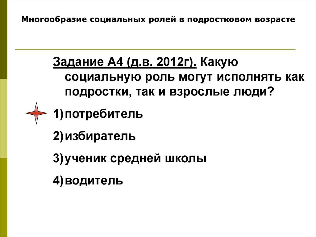 - Многообразие социальных ролей в