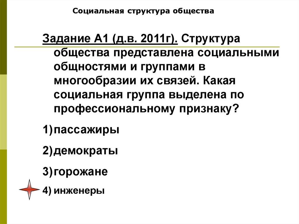Социальная структура обществаЗадание А1 (д.в. 2011г). Структура
