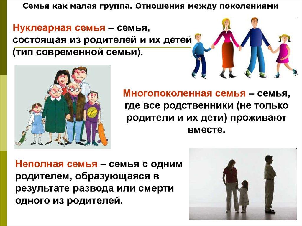 - Семья как малая группа. Отношения между