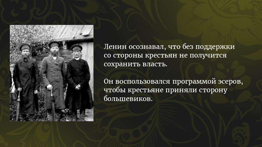 Ленин осознавал, что без поддержкисо стороны крестьян не получится
