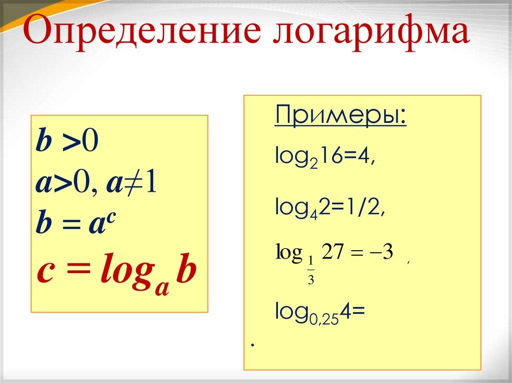 Определение логарифмаПримеры: