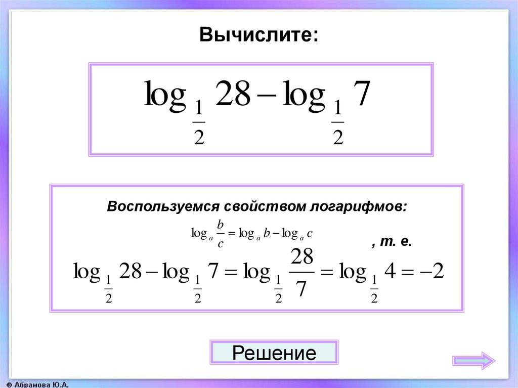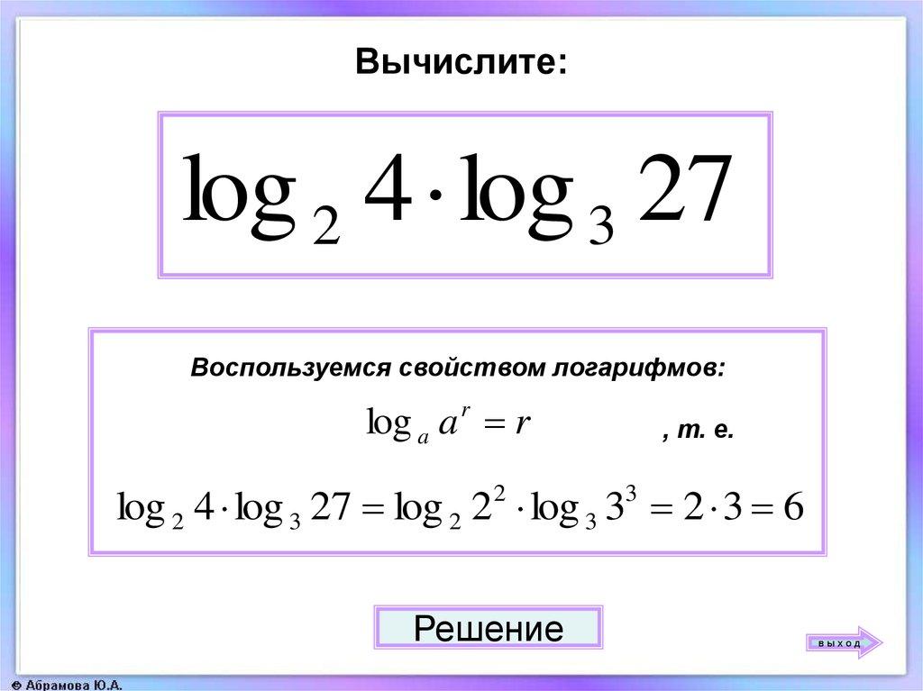 43. Свойства логарифмов