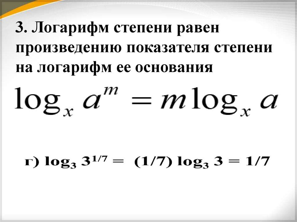 3. Логарифм степени равенпроизведению показателя степени