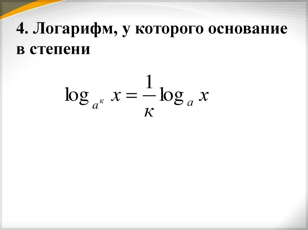 4. Логарифм, у которого основаниев степени