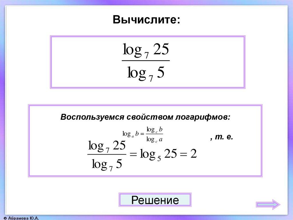Вычислите:log 7 25