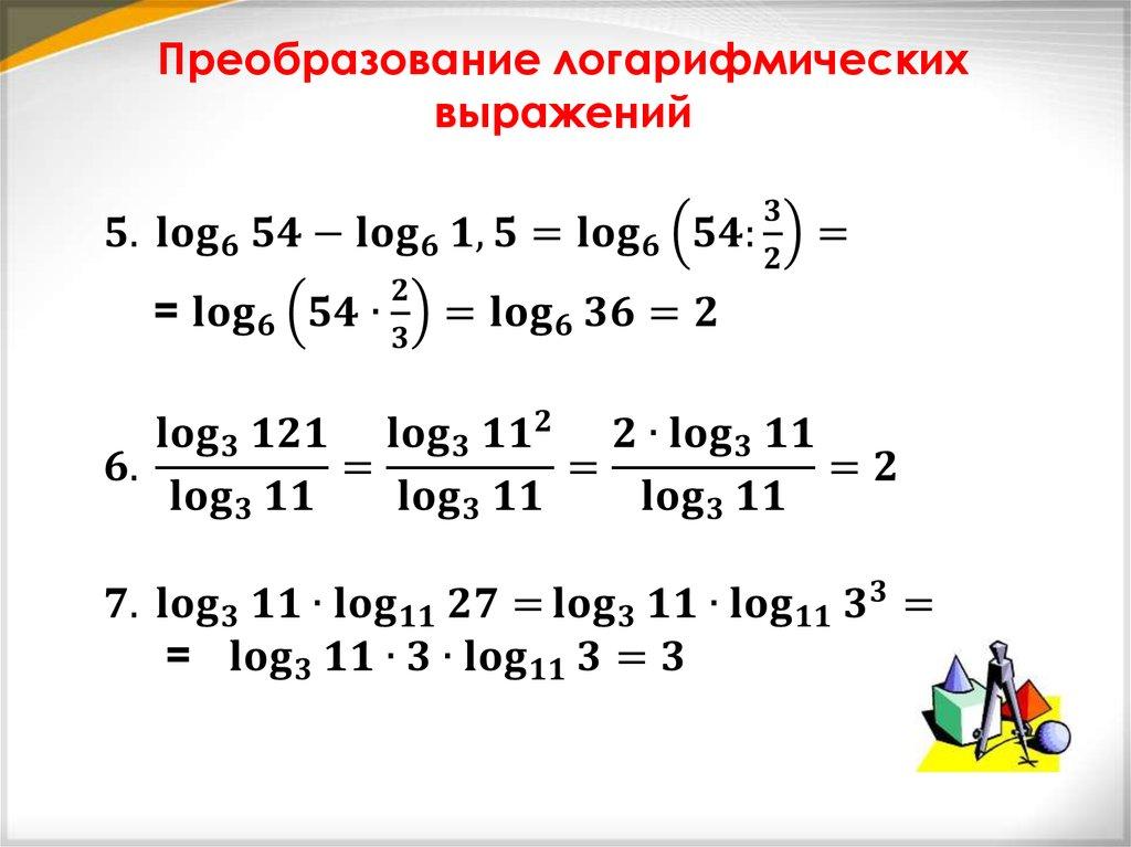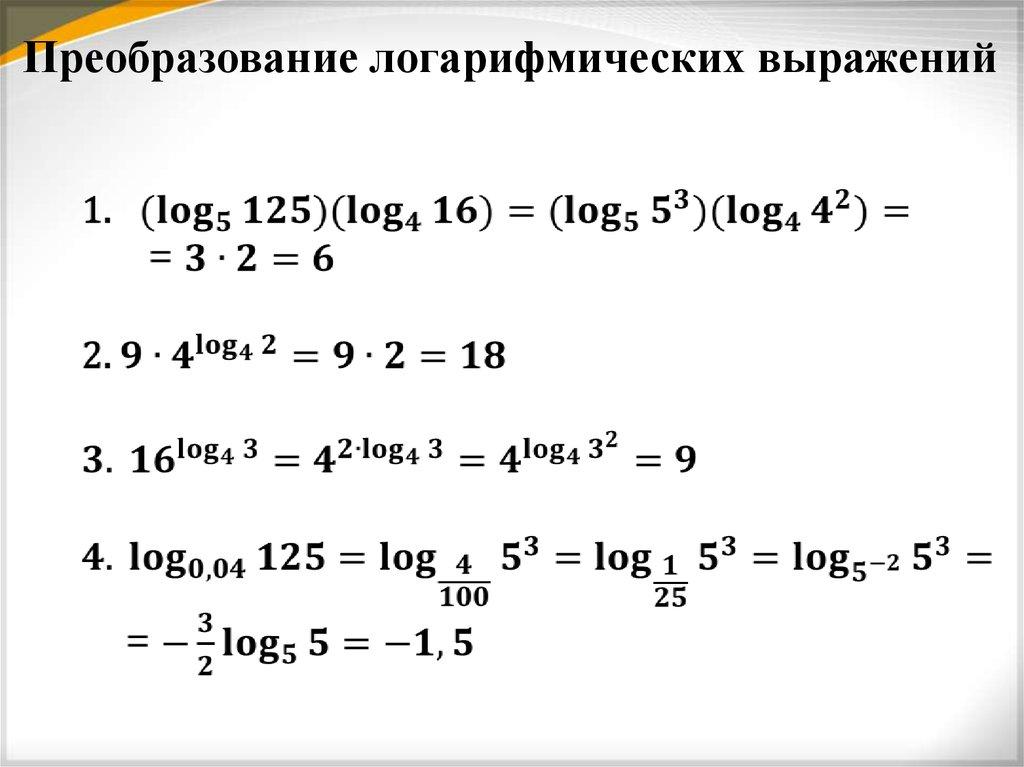 Преобразование логарифмическихвыражений