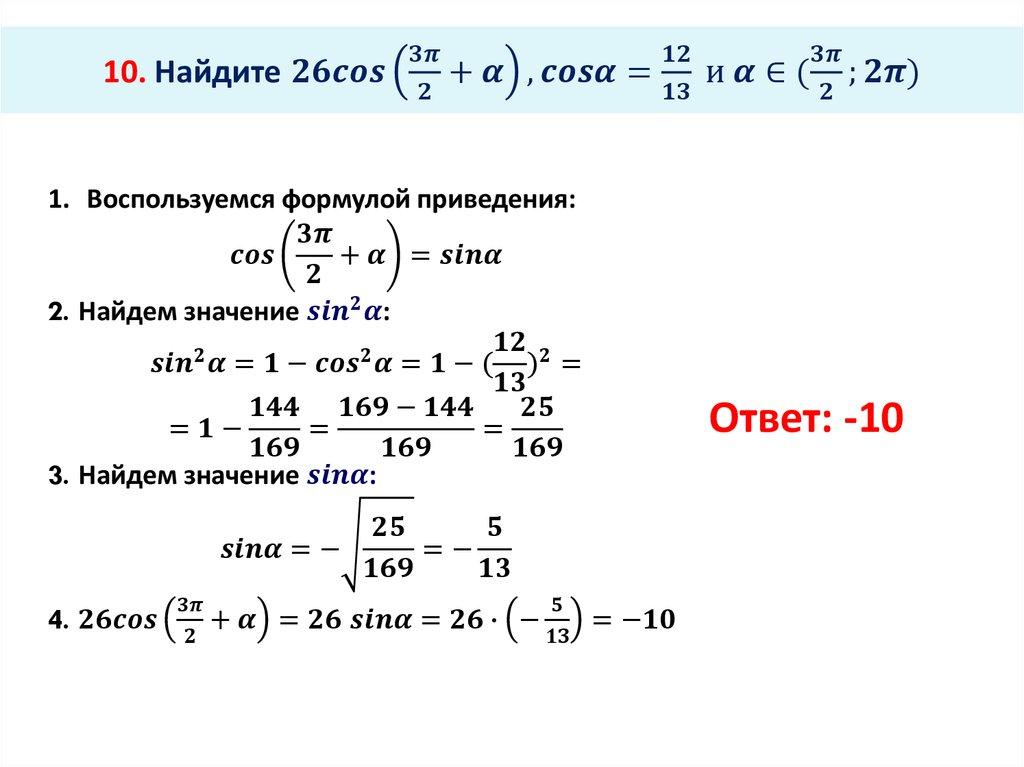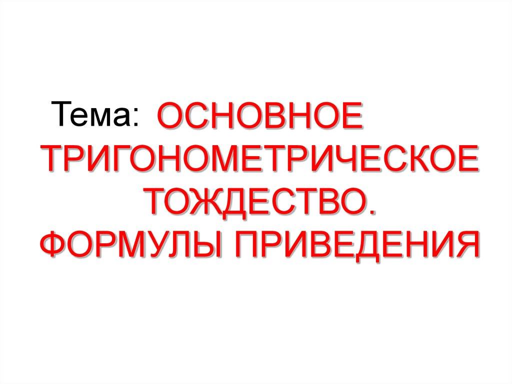 Основное тригонометрическое тождество. Формулы приведения