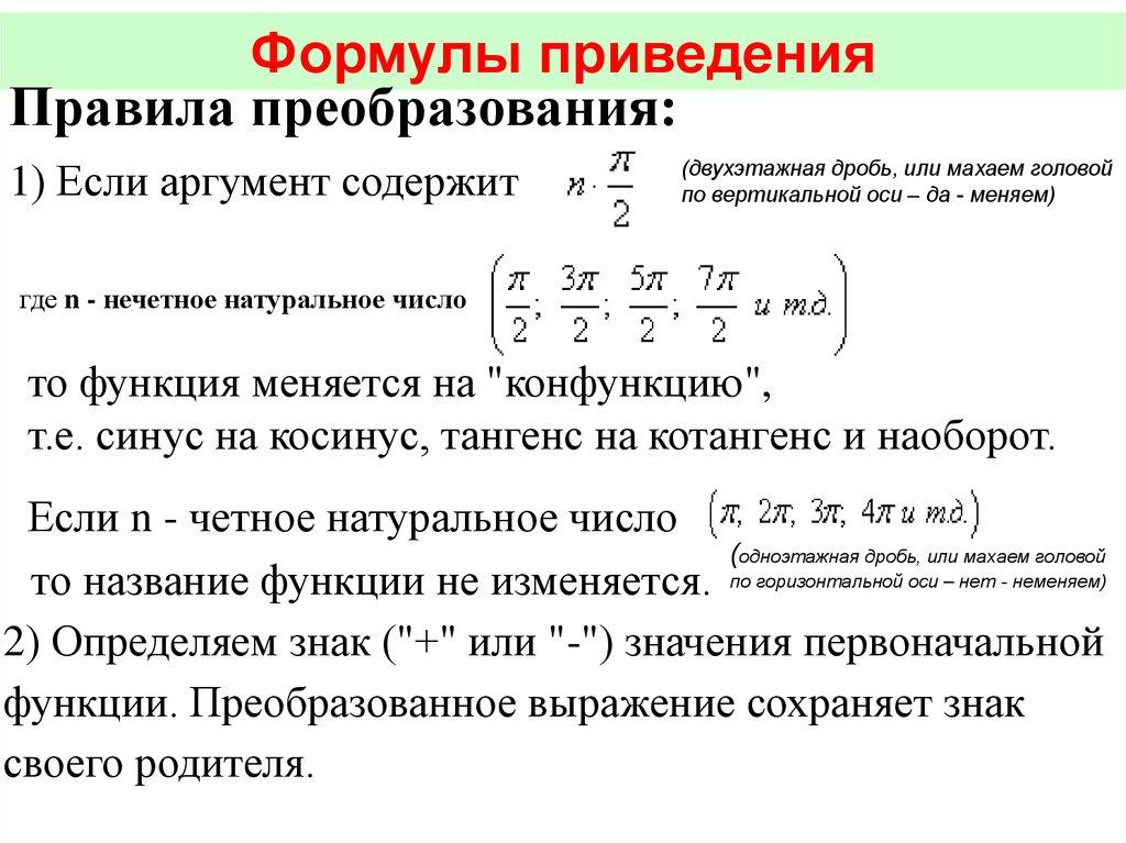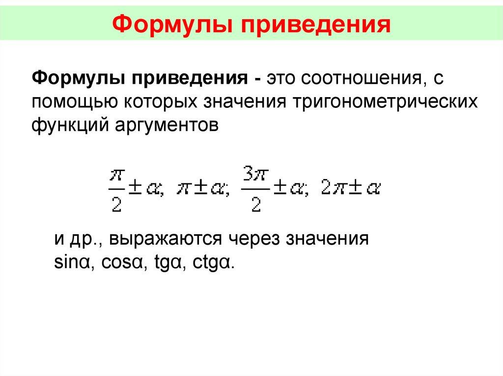 ФОРМУЛЫ ПРИВЕДЕНИЯ