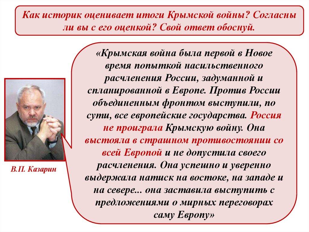 Как историк оценивает итоги Крымской войны? Согласныли вы с его оценкой? Свой ответ обоснуй.
