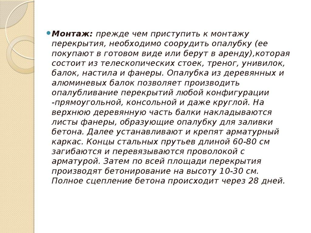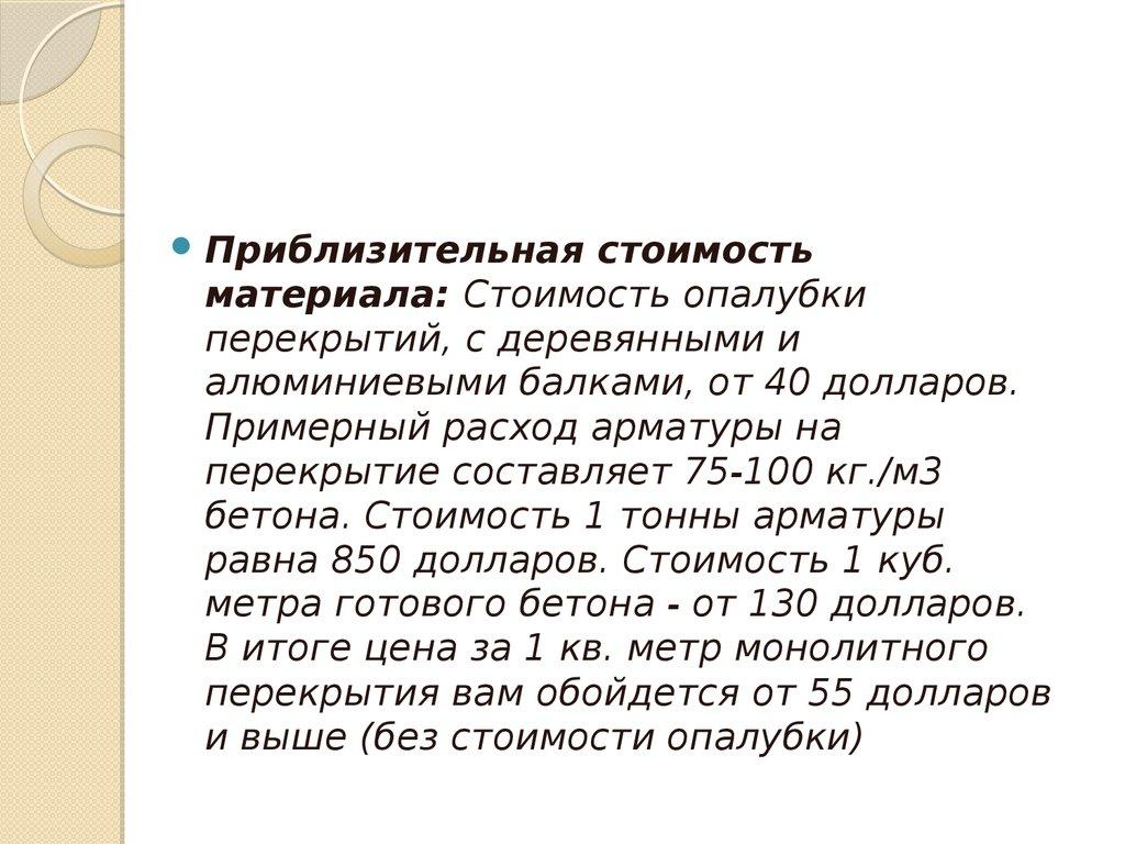 перекрытий составляет примерно 0,1 м3 на 1 м2