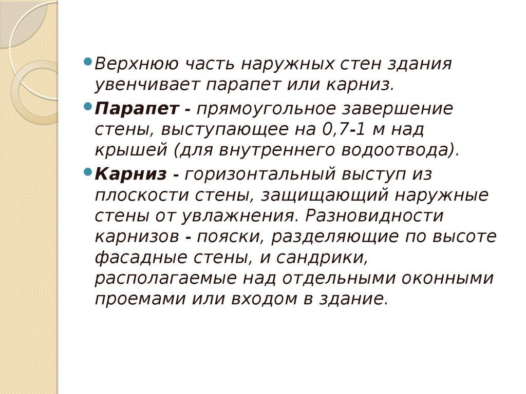 10. Средней этажности (3-5 этажей) – наличие ограждения кровли. В данном случае – парапета.