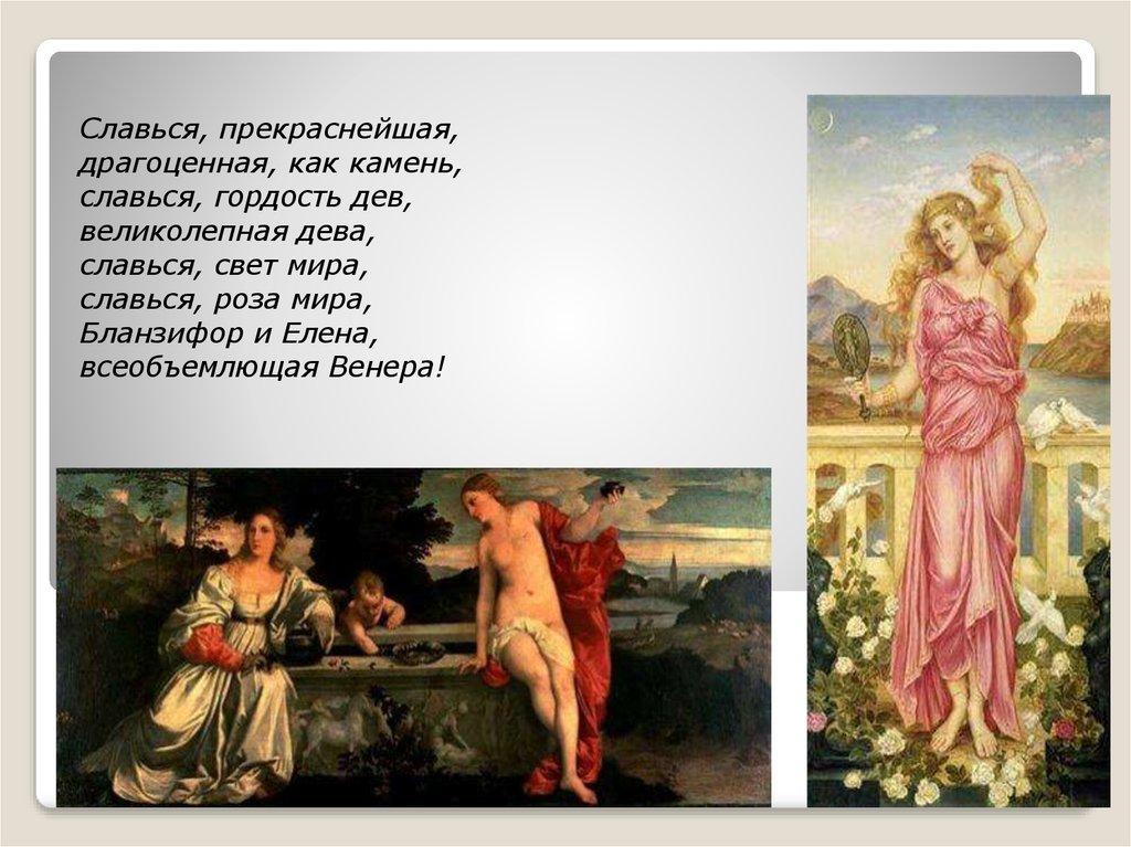 Это гимн женской красоте,воплощенной в оживших на