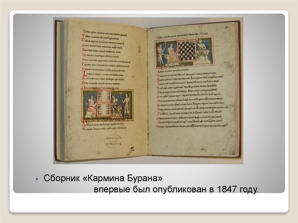 «Кармина Бурана» ("Бойренские песни")—рукописный сборник, составленный около 1300 года и