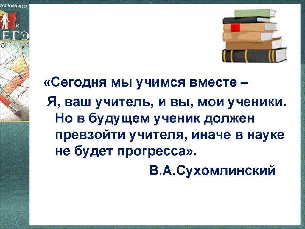 «Сегодня мы учимся вместе –Я, ваш учитель, и вы, мои ученики.
