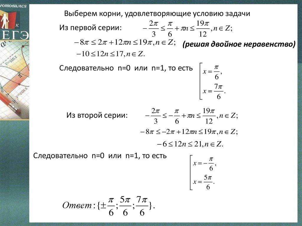 8 2 12 n 19 , n Z ; (решая двойное неравенство)