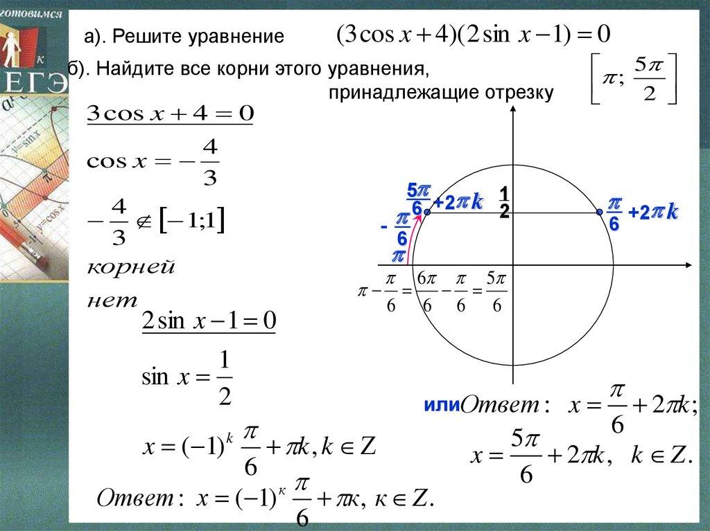 (3 cos x 4)( 2 sin x 1) 0б) Найдите все корни этого уравнения,