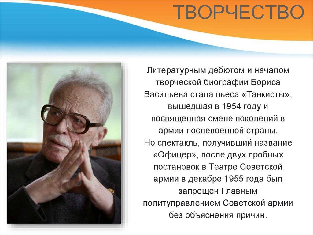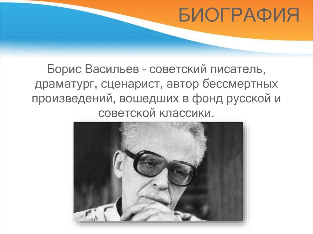 Борис Васильев – советский писатель,драматург, сценарист, автор бессмертных
