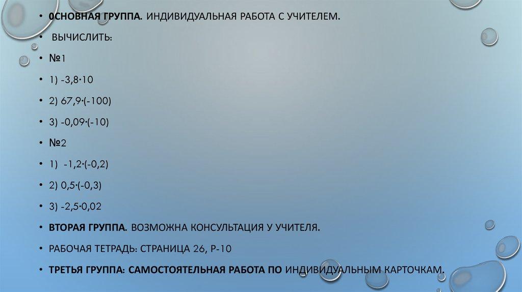 • 0СНОВНАЯ ГРУППА. ИНДИВИДУАЛЬНАЯ РАБОТА С УЧИТЕЛЕМ.• ВЫЧИСЛИТЬ: