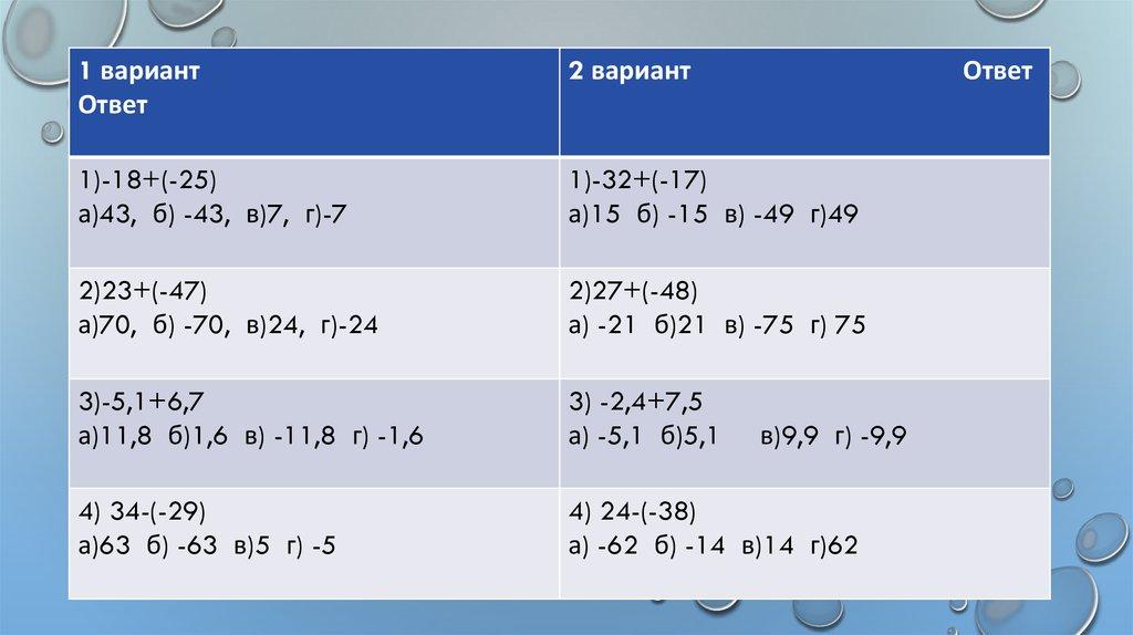 1 ВАРИАНТ: 1) -3,4+ 2=