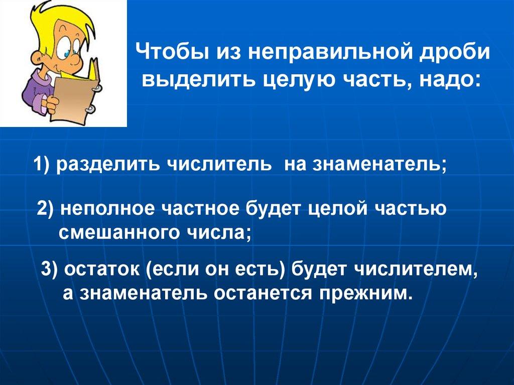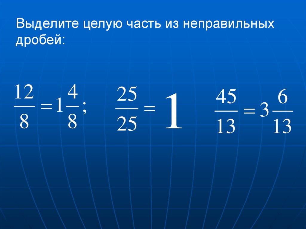 Чтобы из неправильной дробивыделить целую часть, надо: