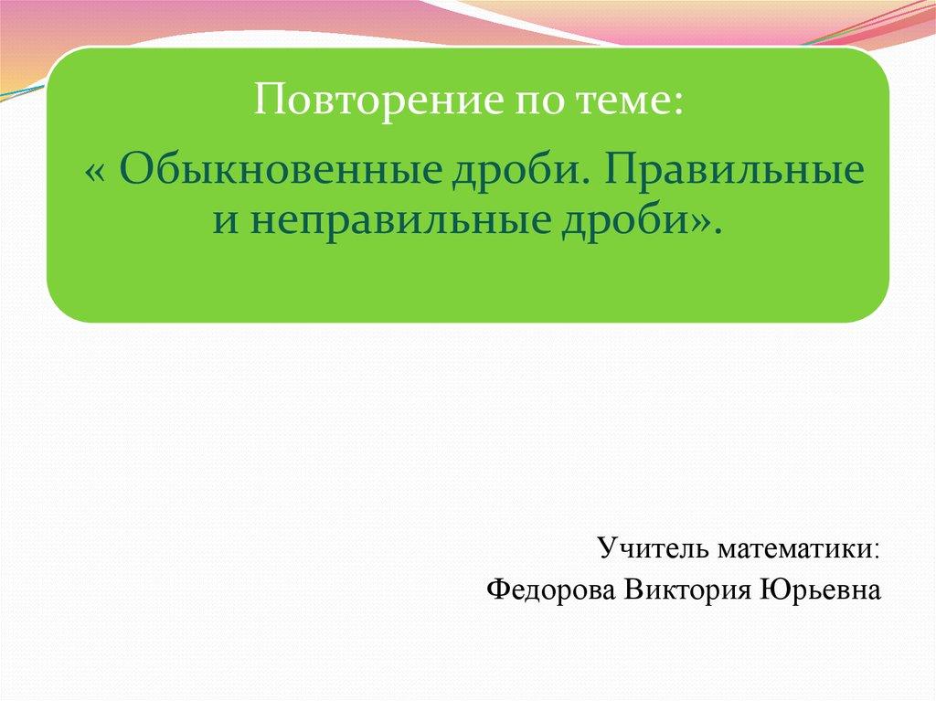 Повторение по теме:« Обыкновенные дроби. Правильные