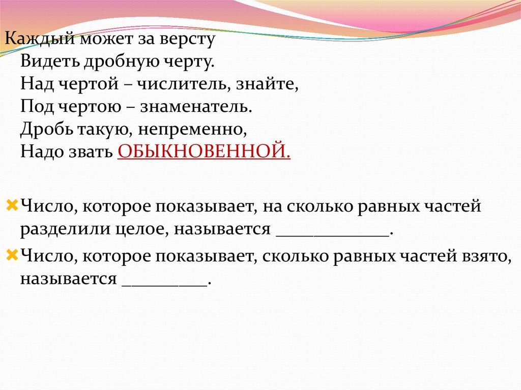 Каждый может за верстуВидеть дробную черту.