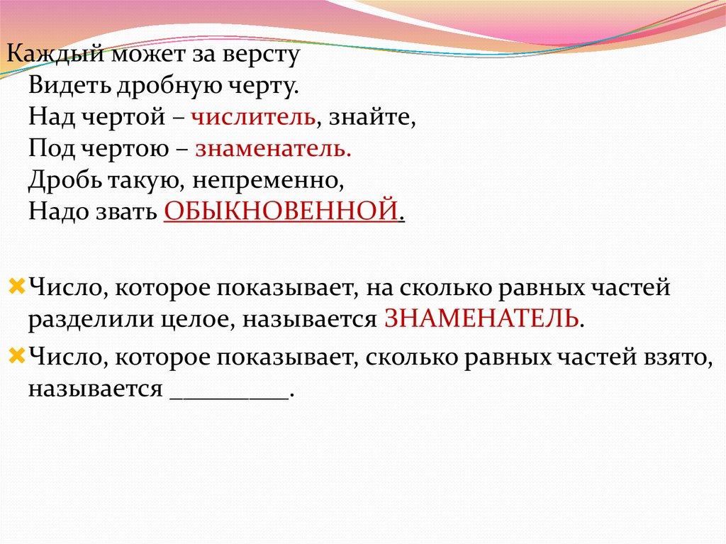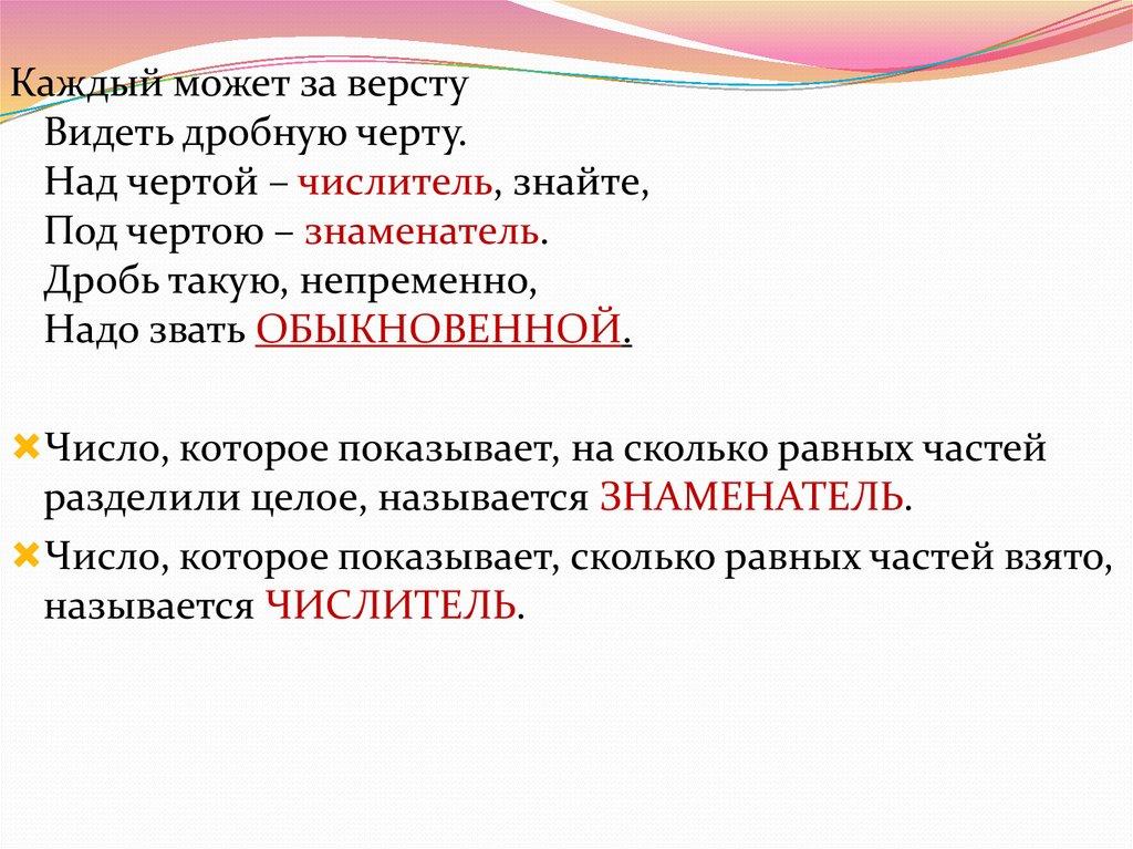 Над чертой – числитель, знайте,