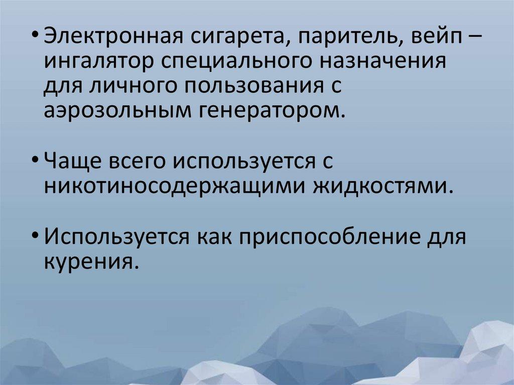 • Электронная сигарета, паритель, вейп –ингалятор специального назначения