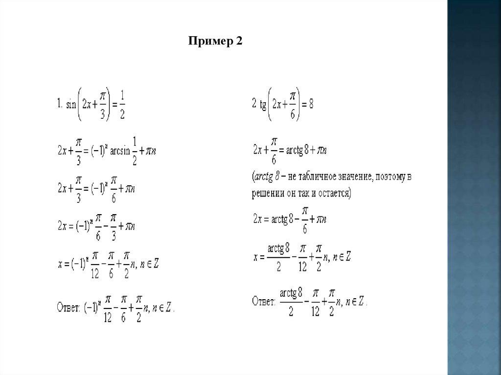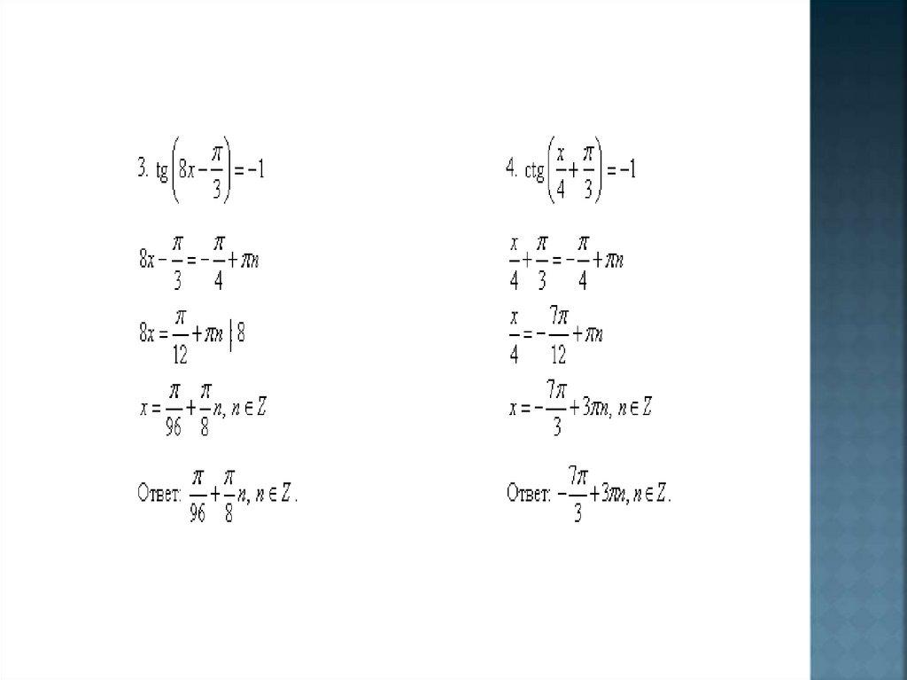 ПРИМЕРЫ УРАВНЕНИЙx = arctg a + πk,k є z