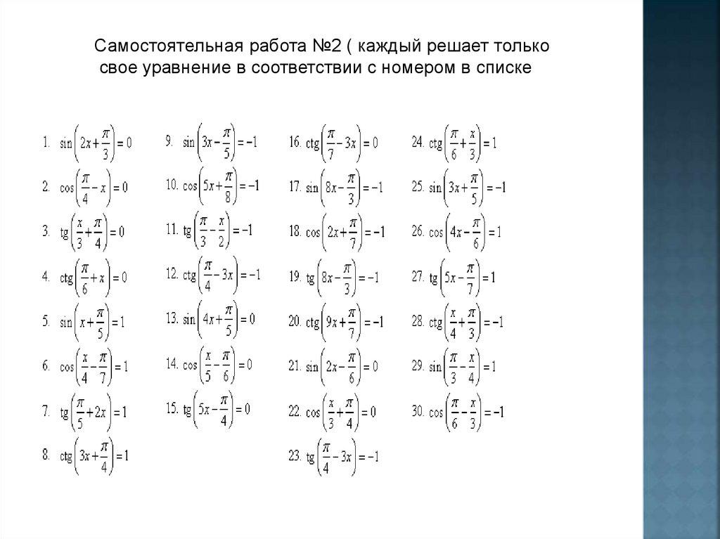 Самостоятельная работа №2 ( каждый решает толькосвое уравнение в соответствии с номером в списке
