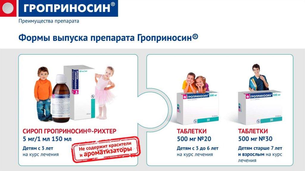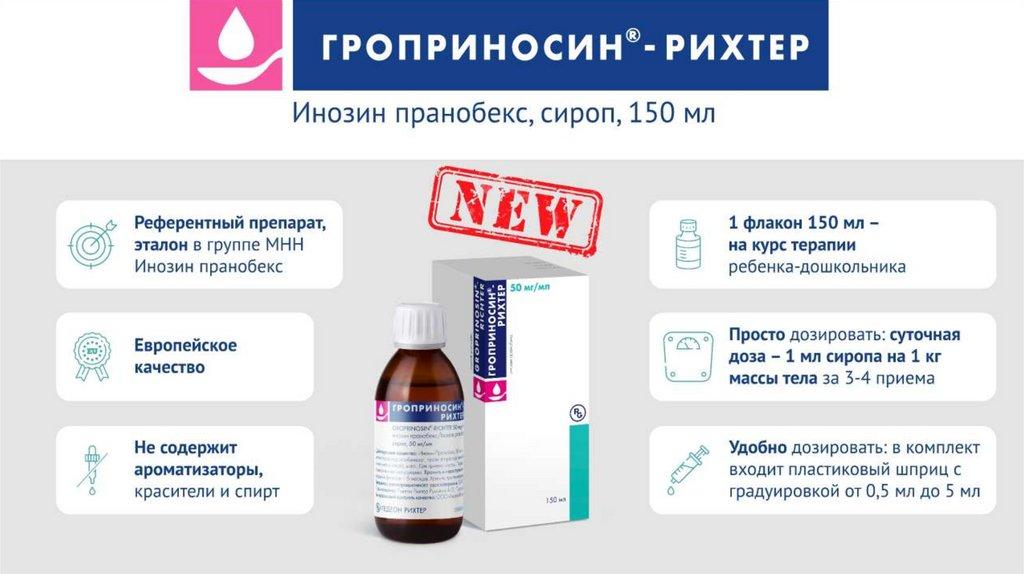 Инструкции по медицинскому применению препарата Гроприносин ® (таблетки) и Гроприносин®-Рихтер (сироп)