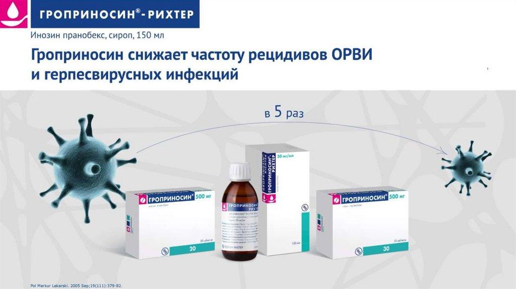 Pol Merkur Lekarski. 2005 Sep;19(111):379-82.25. Гроприносин эффективней и безопасней по сравнению со стандартной терапией ОРВИ