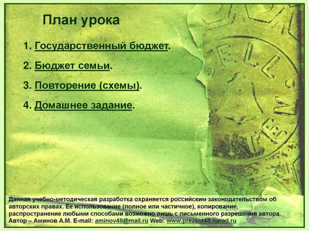 План урока1. Государственный бюджет.