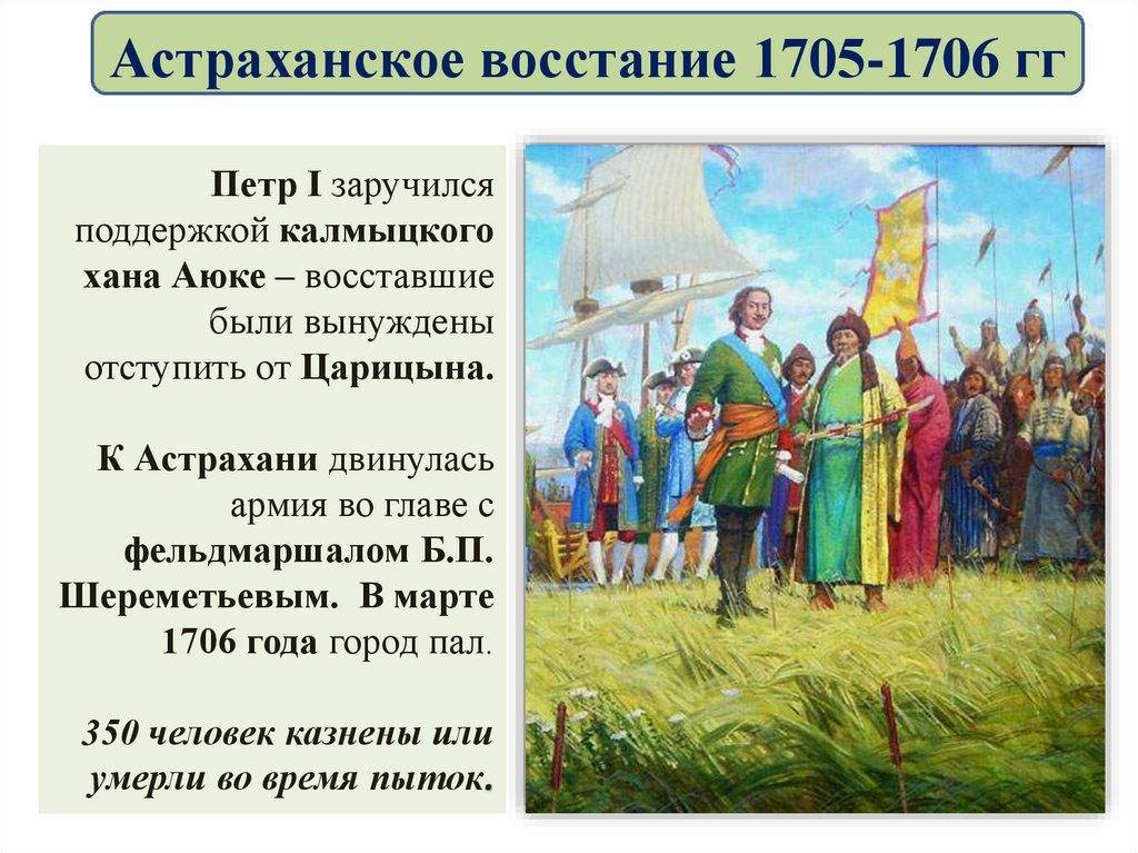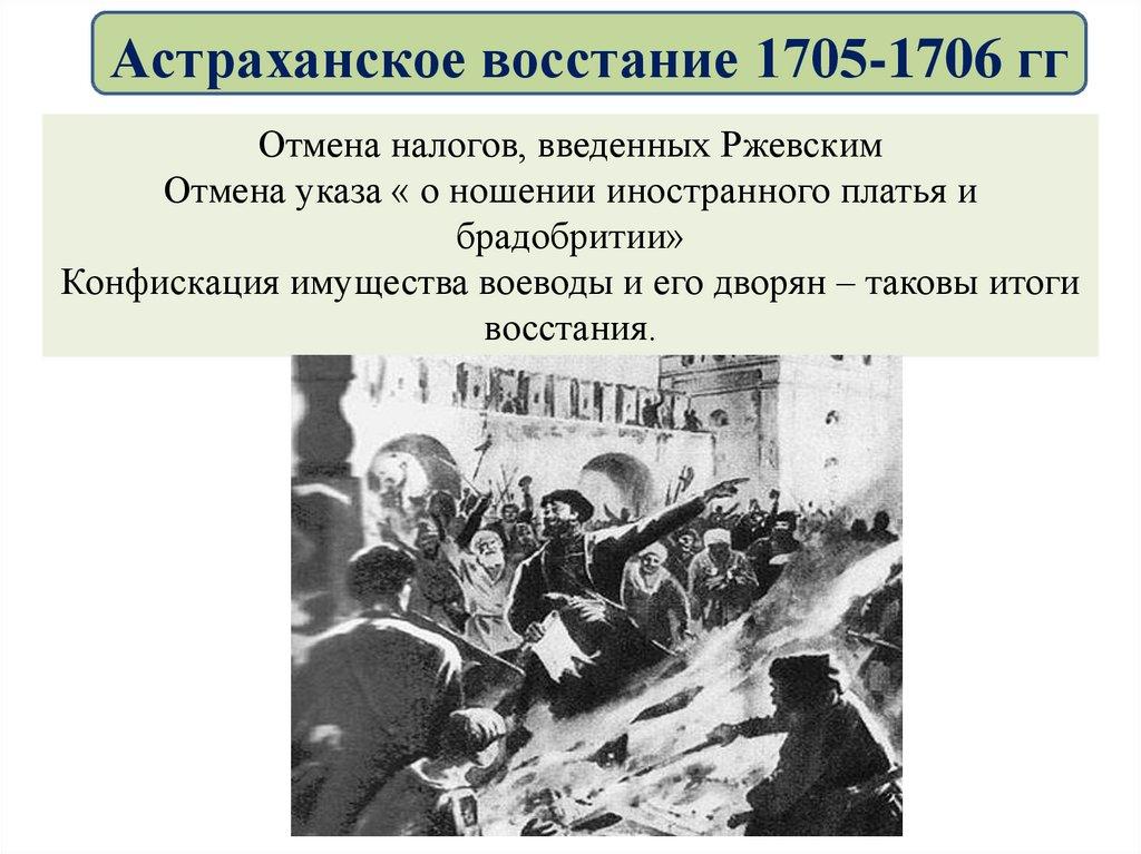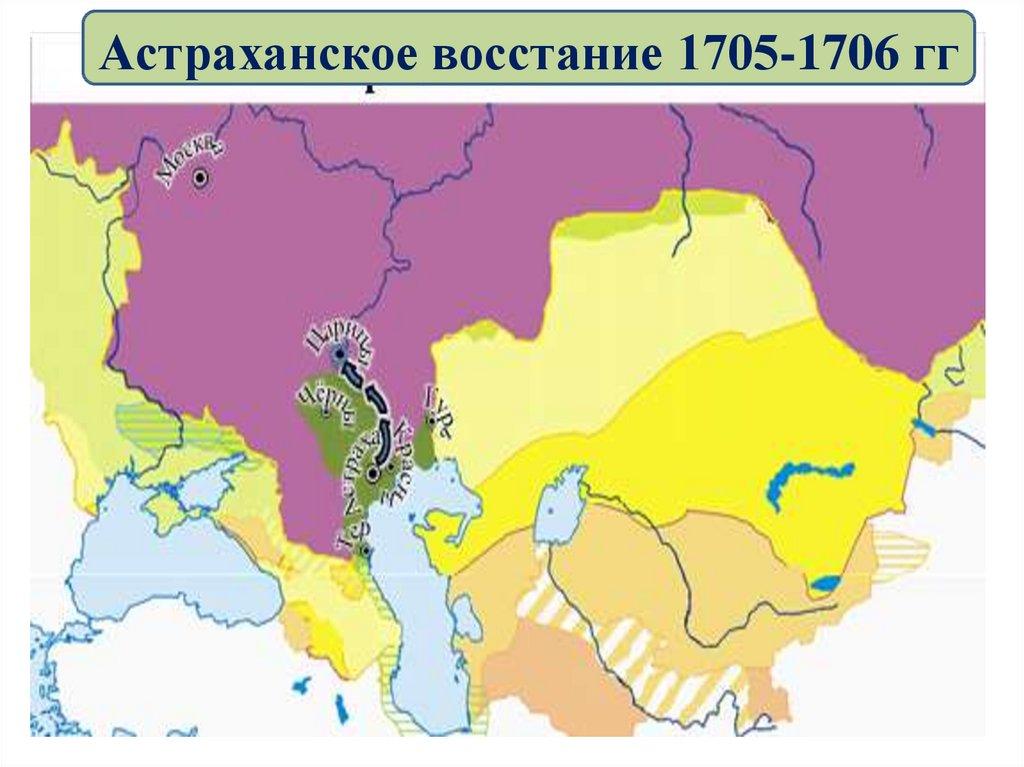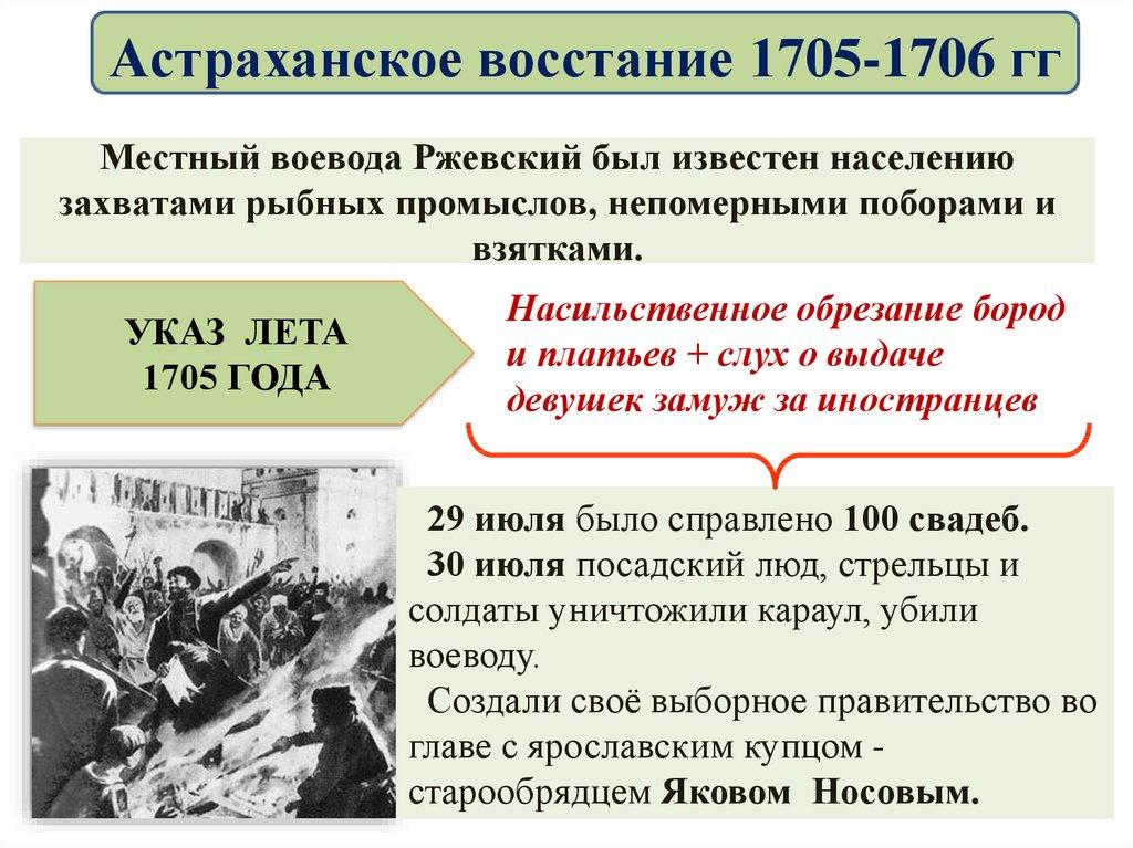 Астраханское восстание 1705-1706 ггПоводом к выступлению послужили репрессии, произвольные