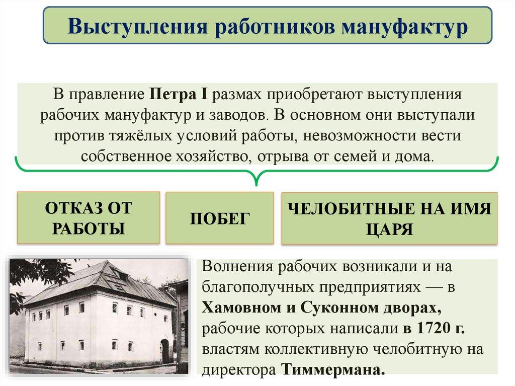при Петре, тяжелые условия труда работных людей.