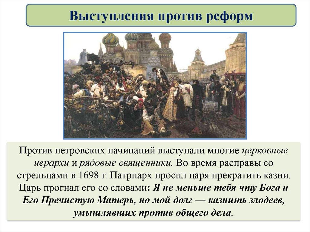 По мнению Петра 1, причинами народных выступлений было