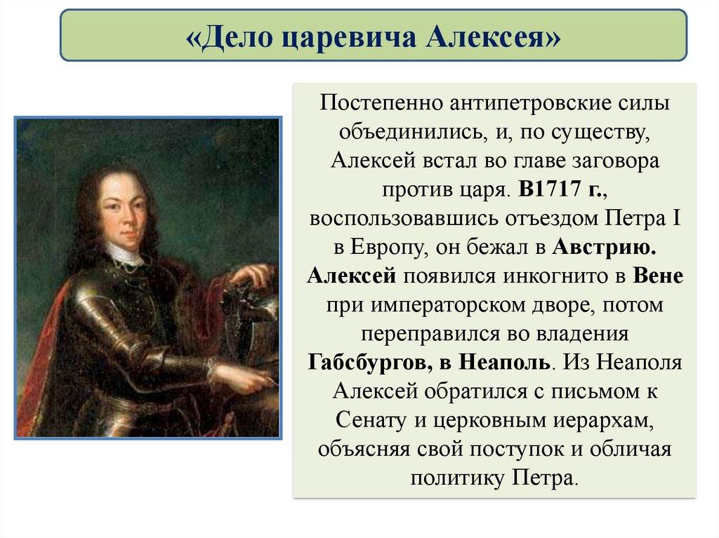 «Дело царевича Алексея»В июне 1718 г. Алексея