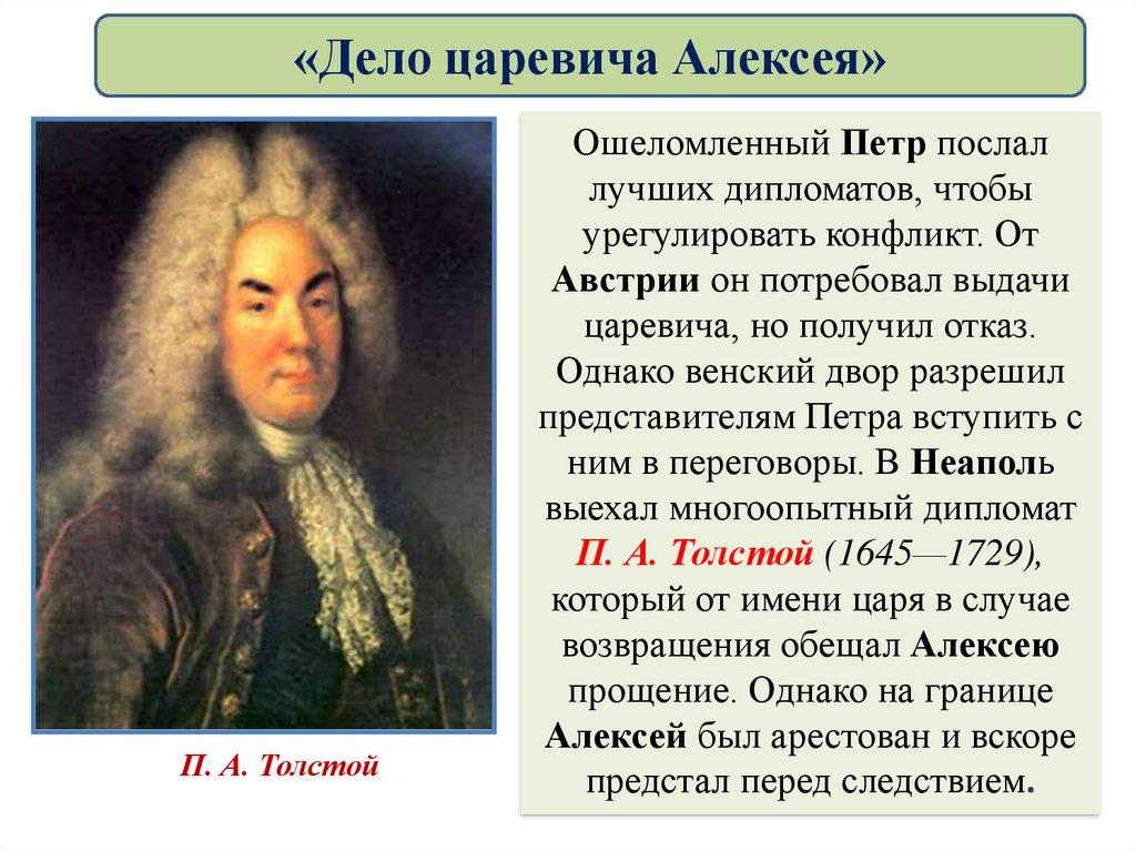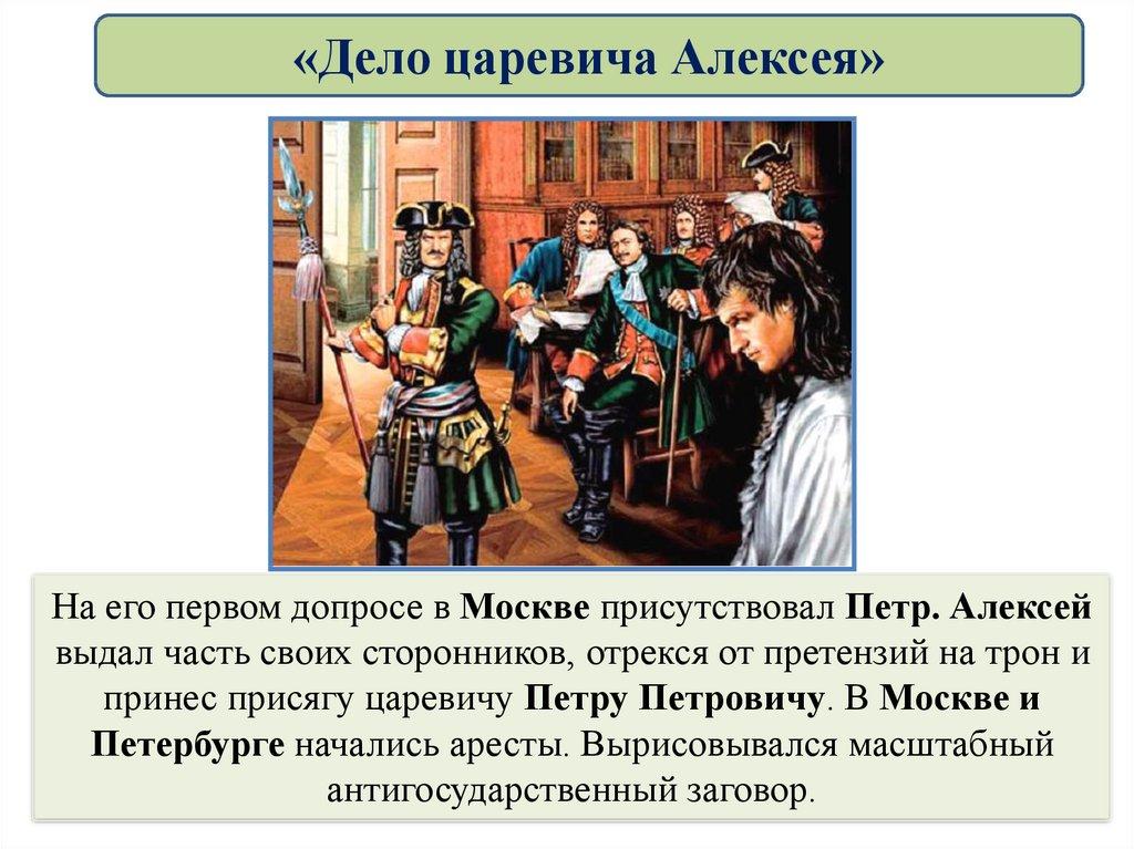 «Дело царевича Алексея»На его первом допросе в Москве присутствовал Петр. Алексей
