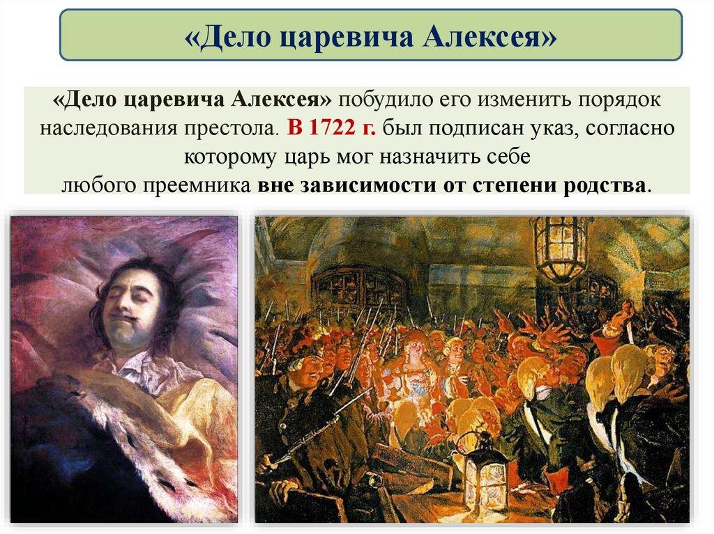 «Дело царевича Алексея»«Дело царевича Алексея» побудило его изменить порядок