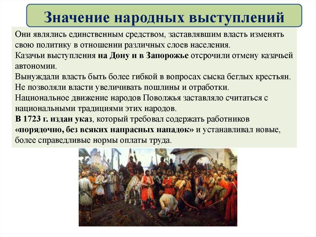 Значение народных выступленийОни являлись единственным средством, заставлявшим власть изменять